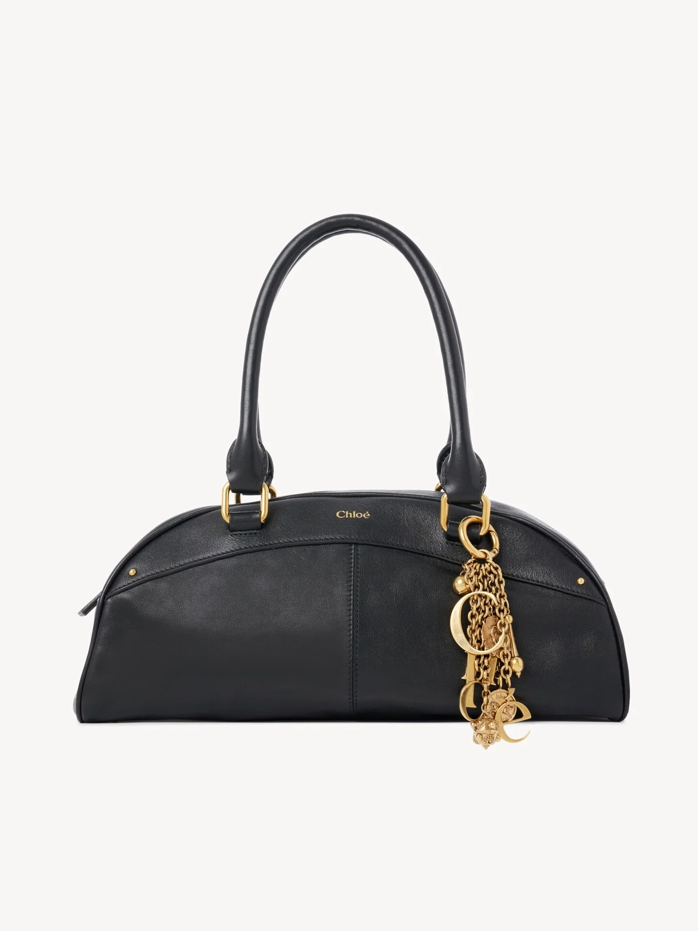 DESCRIPTION Crafted from smooth calfskin, this Chloe bowling bag pairs a structured, rounded silhouette with sturdy top handles. A removable gold-tone key chain is embellished with dangling pendants and the Chloe letters in a nod to the Maison's heritage. Carry on the shoulder or in the hand. PRODUCT DETAILS Chloe bowling bag in smooth calfskin Main material: Calfskin Main lining: Cotton Carry: Hand & shoulder - 1 main compartment - 1 internal flat pocket - Removable key chain - Zip closure Comes with a dust bag - Width: 13" (33 cm) - Height: 5.9" (15 cm) - Depth: 5.9" (15 cm) - Handle drop: 7.1" (18 cm) To make this product, Chloe worked with Leather Working Group (LWG) certified leather manufacturers. LWG certifies tanneries based on their water and energy usage, management of chemicals, solid waste, and wastewater. Color: Black Item code: CH26SS955Q86001 CARE INSTRUCTIONS In order to protect this article, we recommend that you: avoid overloading your bag avoid rubbing against abrasive materials shield it from humidity, light and heat avoid contact with liquids and greasy substances (makeup, cream) store your bag carefully in its dustcover when not in use avoid rubbing against color-contrasting clothes or materials to remove a water stain, gently soak up liquid by dabbing it with a white cloth should a scratch occur on the leather, you can gently massage it with the same type of cloth for all other issues, please contact the Chloe after-sales service or a specialist. TRACEABILITY Better traceability is central to improving our materials as well as social and environmental practices. Dyeing: Italy Finishing: Italy Tanning: Italy
