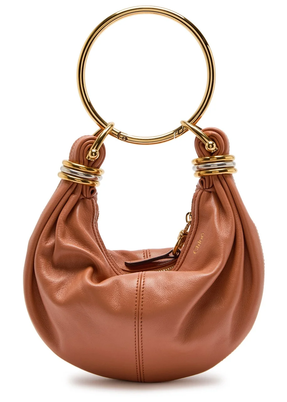 Info & Care Chloe grained leather top handle bag Detachable metal hoop top handle, detachable adjustable press-stud fastening leather shoulder strap, designer stamp, two-tone metal hardware, internal slip pocket, suede lining Zip fastening at top Size & Fit Width: 9.5 inches/ 24cm Height: 8.5 inches/ 21.5cm Depth: 3 inches/ 7.5cm Top handle drop: 3.5 inches/ 9cm Min shoulder strap drop: 13.5 inches/ 34cm Max shoulder strap drop: 16 inches/ 40.5cm