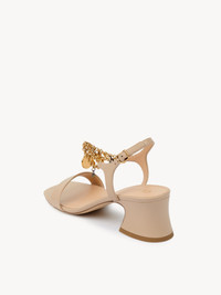 DESCRIPTION Crafted from nappa lambskin, the Chloe Charms heeled sandals combine a minimalist upper with a flared block heel and an adjustable buckled ankle strap. A gold-tone chain embellishes the foot with Chloe Charms inspired by the Maison's heritage. PRODUCT DETAILS Sandal heel height: 2.2" (5.5 cm) Heel-to-toe drop: 2.2" (5.5 cm) Upper: lambskin Inner sole: calfskin Main lining: calfskin Sole: cowhide Heel: lambskin Fit true to size, European sizing - Buckle fastening To make this product, Chloe worked with Leather Working Group (LWG) certified leather manufacturers. LWG certifies tanneries based on their water and energy usage, management of chemicals, solid waste, and wastewater. Color: Blush Pink Item code: CH25A11WRI6E4 CARE INSTRUCTIONS Your Chloe shoes have been carefully crafted by master artisans. The leather was selected with great care for its natural beauty and its finishes provide long-lasting wear.To preserve their beauty and original appearance, we recommend that you take special care of your Chloe shoes.Store them away from direct sunlight, heat and rain. To prevent colour migration avoid any contact with other leathers.Should your shoes get wet, dry them with a soft cloth. The smooth or grained leather parts of your shoes can be cleaned with a dry, soft cloth.To maintain the velvety appearance of suede or nubuck leather, gently clean with a crepe brush.Fill your shoes with tissue paper to help them maintain their original shape, then place them in the two protective covers provided. Store them in a cool, dry, well-aired place.