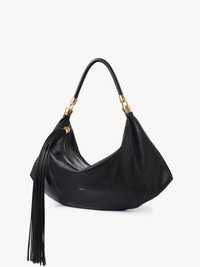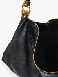 The Chloe Foulard shoulder bag is crafted from grained buffalo leather with a supple silhouette inspired by the drape of a scarf. This carry-all hobo bag is finished with an oversized tassel and the line's signature Horse Medal hardware. PRODUCT DETAILS Chloe Foulard shoulder bag in grained buffalo leather Main material: Buffalo leather Main lining: Calfskin Carry: Shoulder - 1 main compartment - 1 inside zipped pocket - Zip closure Comes with a dust bag - Width: 21.7" (55 cm) - Height: 12.6" (32 cm) - Depth: 3.5" (9 cm) - Strap drop: 15.4" (39 cm) This shoulder bag is made from natural leather with a very light finish. Keep away from water (rain). The bag may develop smooth or light halos. If the leather gets wet, dry it with a soft white cotton cloth to absorb water. With use, the leather may become marked. For large and medium size bags, the handle will arrive inside the bag. Do not throw it away. To make this product, Chloe worked with Leather Working Group (LWG) certified leather manufacturers. LWG certifies tanneries based on their water and energy usage, management of chemicals, solid waste, and wastewater. Color: Black Item code: CHC25SS446O37001
