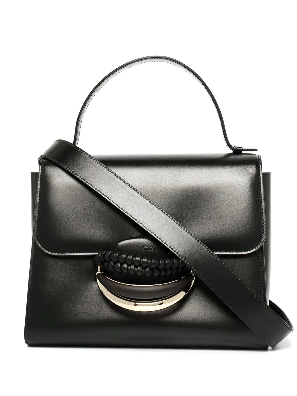 Kattie crossbody bag jet black leather debossed logo to the front bracelet detail to the front single top handle detachable shoulder strap foldover top with magnetic fastening main compartment internal slip pocket Made in Italy Composition Leather 100% SIZE & FIT Model measurements Height 5 ft 10 in(1.77 m) Bust/Chest 33.85 in(86 cm) Hips 35.03 in(89 cm) Waist 24.01 in(61 cm) Measurement DEPTH 5.7 in(14.5 cm) HEIGHT 8.66 in(22 cm) WIDTH 10.43 in(26.5 cm)