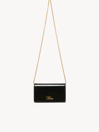 DESCRIPTION Crafted from patent calfskin, the Chloe Iconic flap wallet on chain combines a minimalist silhouette with a metallic signature from the Maison's archives. Sized to fit your phone, this practical accessory features two compartments, a zipped pocket and multiple card slots. Carry on the shoulder or crossbody. PRODUCT DETAILS Flap wallet on chain in patent calfskin Main lining: Calfskin Inner lining: 65% Polyester, 35% Cotton Carry: Shoulder & crossbody - 1 chain strap - 1 flap with magnetic closure - 2 main compartments - 1 zipped compartment - 8 card slots - 1 inside flat pocket Comes with a dust bag - Width: 7.5" (19 cm) - Height: 3.7" (9.5 cm) - Depth: 2" (5 cm) To make this product, Chloe worked with Leather Working Group (LWG) certified leather manufacturers. LWG certifies tanneries based on their water and energy usage, management of chemicals, solid waste, and wastewater. Color: Black Item code: CHC25SP485O68001 CARE INSTRUCTIONS In order to protect this article, we recommend that you: avoid rubbing against abrasive materials shield it from humidity, light and heat avoid contact with liquids and greasy substances (makeup, cream) store your product carefully in its dustcover when not in use avoid rubbing against color-contrasting clothes or materials. To remove a water stain, gently soak up liquid by dabbing it with a white cloth should a scratch occur on the leather, you can gently massage it with the same type of cloth for all other issues, please contact the Chloe after-sales service or a specialist. TRACEABILITY Better traceability is central to improving our materials as well as social and environmental practices. Dyeing: Italy Finishing: Italy Tanning: Italy