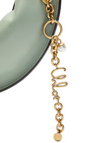 Info & Care Chloe leather shoulder bag Chain shoulder strap with hanging pendants, designer stamp, fully lined Zip fastening across top Size & Fit Width: 16 inches/ 40.5cm Height: 7 inches/ 18cm Depth: 0.5 inch/ 1cm Shoulder strap;drop: 18.5 inches/ 47cm