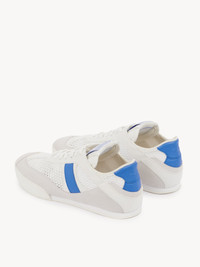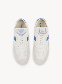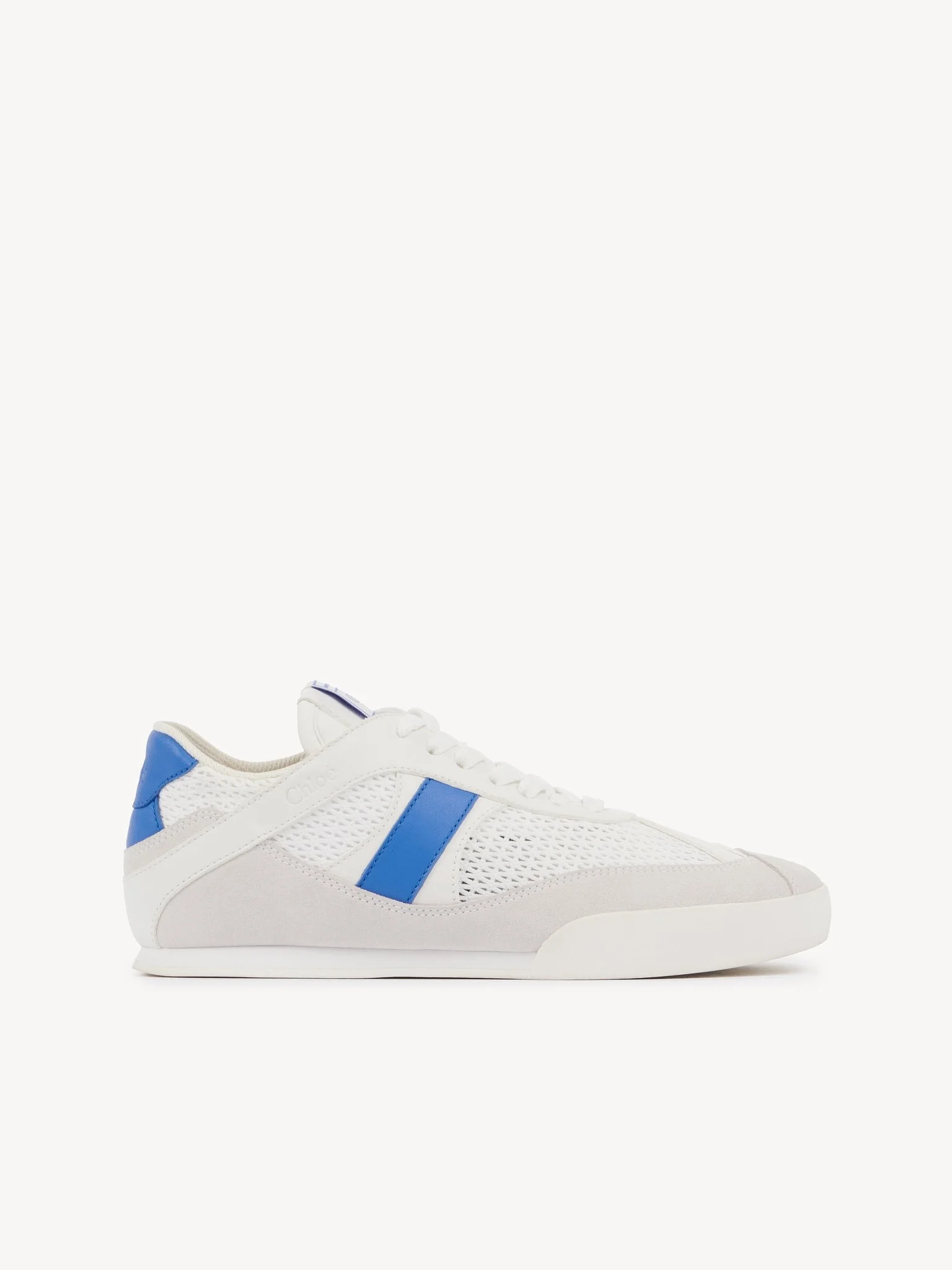 Inspired by the ballet and boxing worlds, these Chloe Kick sneakers are crafted from recycled mesh and smooth suede calfskin. Lightweight and comfortable, they combine a slim silhouette with a recycled sole and an inner wedge for added height and support. A boxing-style Chloe label lends a signature finish. PRODUCT DETAILS Sneaker heel height: 0.8" (2 cm) Heel-to-toe drop: 0.2" (0.5 cm) Upper 1: calfskin Upper 2: cowhide Upper 3: suede cowhide Upper 4: polyester Upper 5: nylon Inner sole: polyester Main lining: polyester Sole: 50% ethylene vinyl acetate, 50% rubber Fit true to size, European sizing - Lace-up Chloe Kick sneakers come in a dedicated dustbag and box evoking the ballet and boxing worlds. To make this product, Chloe worked with Leather Working Group (LWG) certified leather manufacturers. LWG certifies tanneries based on their water and energy usage, management of chemicals, solid waste, and wastewater. Color: White - Blue Item code: CHC25S07IPL91J