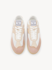 Inspired by the ballet and boxing worlds, these Chloe Kick sneakers are crafted from recycled mesh and a mix of smooth and suede calfskin. Lightweight and comfortable, they combine a slim silhouette with a recycled sole and an inner wedge for added height and support. A boxing-style Chloe label lends a signature finish. PRODUCT DETAILS Sneaker heel height: 0.8" (2 cm) Heel-to-toe drop: 0.2" (0.5 cm) Upper 1: calfskin Upper 2: cowhide Upper 3: suede cowhide Upper 4: polyester Upper 5: nylon Inner sole: polyester Main lining: polyester Sole: 50% ethylene vinyl acetate, 50% rubber Fit true to size, European sizing - Lace-up Chloe Kick sneakers come in a dedicated dustbag and box evoking the ballet and boxing worlds. To make this product, Chloe worked with Leather Working Group (LWG) certified leather manufacturers. LWG certifies tanneries based on their water and energy usage, management of chemicals, solid waste, and wastewater. Color: Light Rosewood Item code: CHC25S07IPL6K5