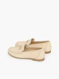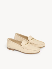 Crafted from shiny calfskin, the Chloe loafers pair a sleek silhouette with pleated detail. The upper is embellished with a delicate gold-tone chain featuring the Chloe logo. PRODUCT DETAILS Flat loafer Upper: calfskin Inner sole: lambskin Main lining: lambskin Sole: cowhide Fit true to size, European sizing - Slip-on To make this product, Chloe worked with Leather Working Group (LWG) certified leather manufacturers. LWG certifies tanneries based on their water and energy usage, management of chemicals, solid waste, and wastewater. Color: Sweet Beige Item code: CHC25A11SPI24Q