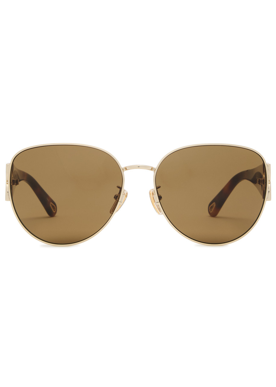 Info & Care Chloe metal sunglasses Designer plaque at temples, designer-engraved acetate arms, cut-out detail at tips 100% UV protection; Presented in a designer-stamped soft case with cleaning cloth; Size & Fit Frame width: 14.3cm Frame height: 5.5cm;