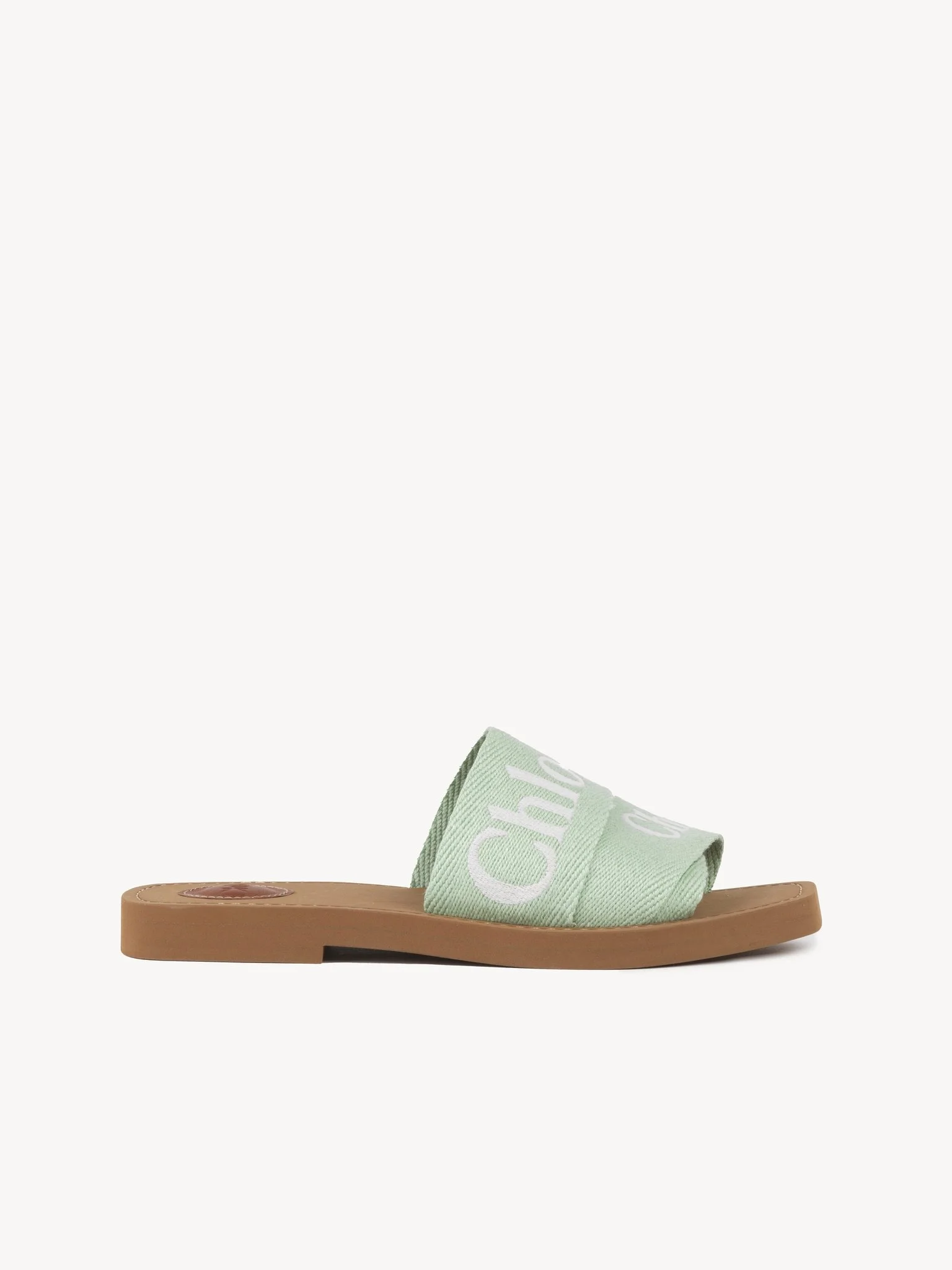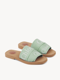 Revisited in lower-impact linen, this Woody flat mule reveals an interplay of different-sized ribbons with the embroidered Chloe logo in striking contrast. Together, they form a large upper for a comfortable fit. The easy slip-on design makes this flat a summer essential. The Maison's "O" signature adorns the inner sole, while iconic ecru stitches lend an equestrian mood to the recycled rubber sole for a playful twist. PRODUCT DETAILS Flat mule - Upper: 90% linen, 10% polyester - Main lining: 90% linen, 10% polyester - Inner sole: 95% ethylene vinyl acetate, 5% cowhide - Sole: ethylene vinyl acetate Fit true to size, European sizing - Flat - Slip-on mule Linen, hemp and ramie cultivations emit fewer greenhouse gases and require less water compared to other conventional natural fibers, which is why they are considered lower-impact materials by nature. Color: Spearmint Item code: CHC23U188EF33B