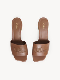Crafted from shiny calfskin, the Chloe Soleil heeled mules combine a flared block heel with a distinctive wavy sole. The upper is stitched with the Chloe Iconic logo. PRODUCT DETAILS Mule heel height: 2.2" (5.5 cm) Heel-to-toe drop: 2.2" (5.5 cm) Upper: calfskin Inner sole: lambskin Main lining: lambskin Sole: cowhide Heel: calfskin Fit true to size, European sizing - Slip-on To make this product, Chloe worked with Leather Working Group (LWG) certified leather manufacturers. LWG certifies tanneries based on their water and energy usage, management of chemicals, solid waste, and wastewater. Color: Ginger Brown Item code: CH25A12MPI27T