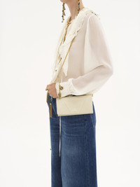 Crafted from grained buffalo leather, the Chloe Spin flap wallet has a minimalist silhouette elevated with graphic lines. A dangling chain features the Maison's signature Chloe and Horse Medals for a radiant finish. Sized to fit your phone, this wallet on chain comes with a strap for shoulder and crossbody carry. PRODUCT DETAILS Flap wallet on chain in grained buffalo leather Main lining: Buffalo leather Inner lining: 65% Polyester, 35% Cotton Carry: Crossbody & shoulder - 1 chain strap - 1 flap with magnetic closure - 2 main compartments - 1 zipped compartment - 6 card slots - 1 external flat pocket Comes with a dust bag - Width: 7.9" (20 cm) - Height: 3.9" (10 cm) - Depth: 1.6" (4 cm) This flap wallet is made from natural leather with a very light finish. Keep away from water (rain). The wallet may develop smooth or light halos. If the leather gets wet, dry it with a soft white cloth to absorb water. With use, the leather may become marked. To make this product, Chloe worked with Leather Working Group (LWG) certified leather manufacturers. LWG certifies tanneries based on their water and energy usage, management of chemicals, solid waste, and wastewater. Color: Vegetal Beige Item code: CHC25SP495O3723N