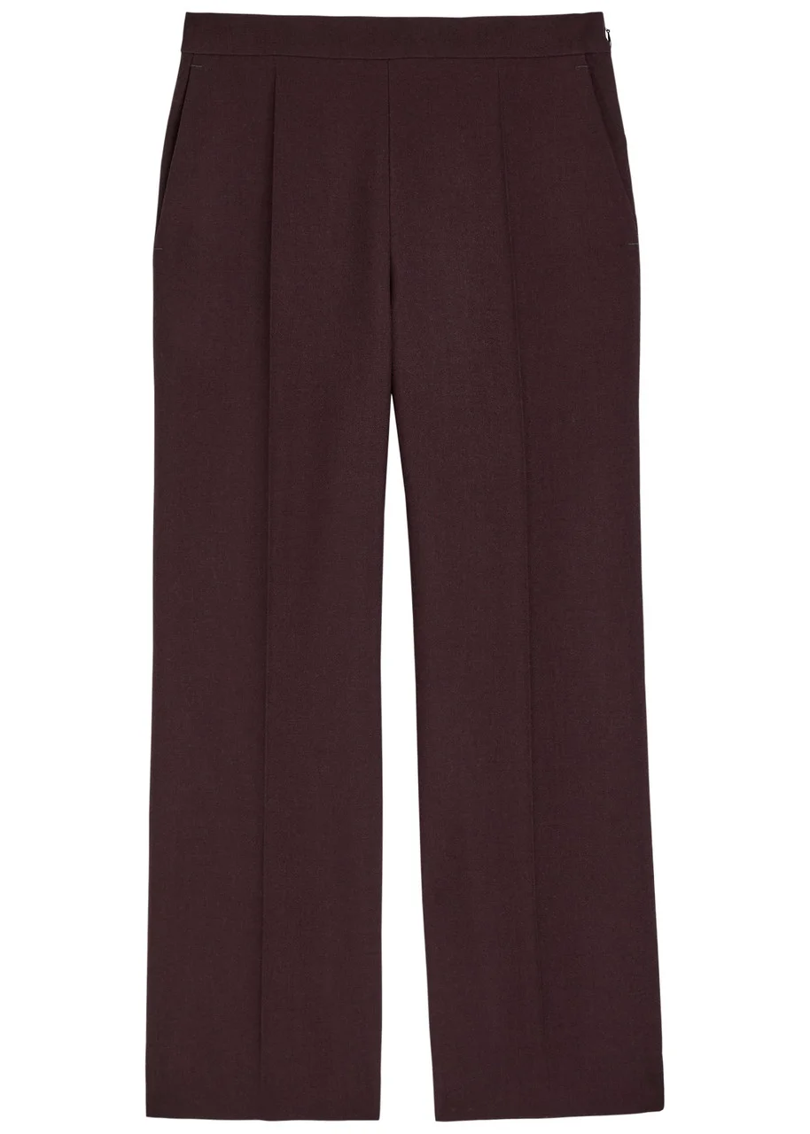 Info & Care Chloe wool trousers Press crease through leg, side slip pockets, slit pockets at back; Concealed zip and hook fastening at side; 100% virgin wool; lining: 100% cotton Dry clean; Size & Fit Inside leg length: 29 inches/ 74cm Midweight High-rise fit, straight-leg cut Model is 5'9"/ 175cm;and wears a size FR36