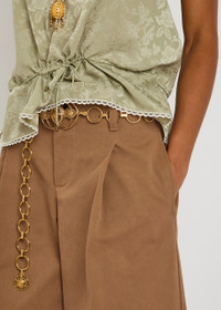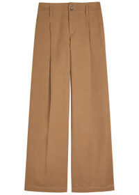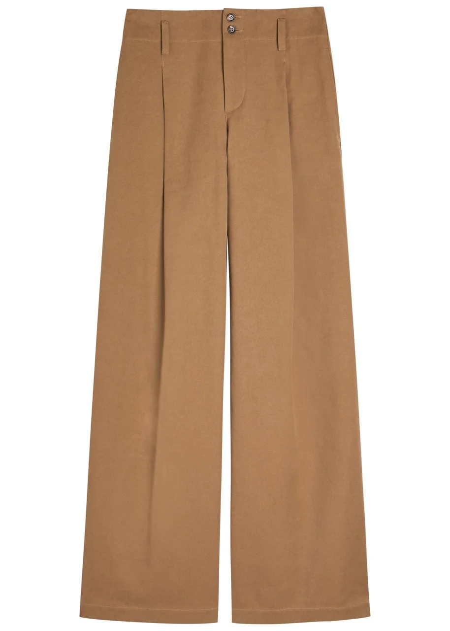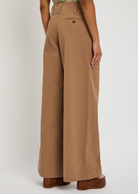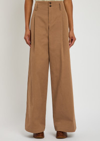 Info & Care Chloe cotton-canvas trousers Belt loops,;pleats at waist, side slip pockets, button-fastening back slit pockets Concealed zip and button fastening at front; 100% cotton; Dry clean Size & Fit Inside leg length: 34 inches/ 87.5cm Midweight; Wide-leg cut Model is 5'9"/ 175cm and wears a size FR36