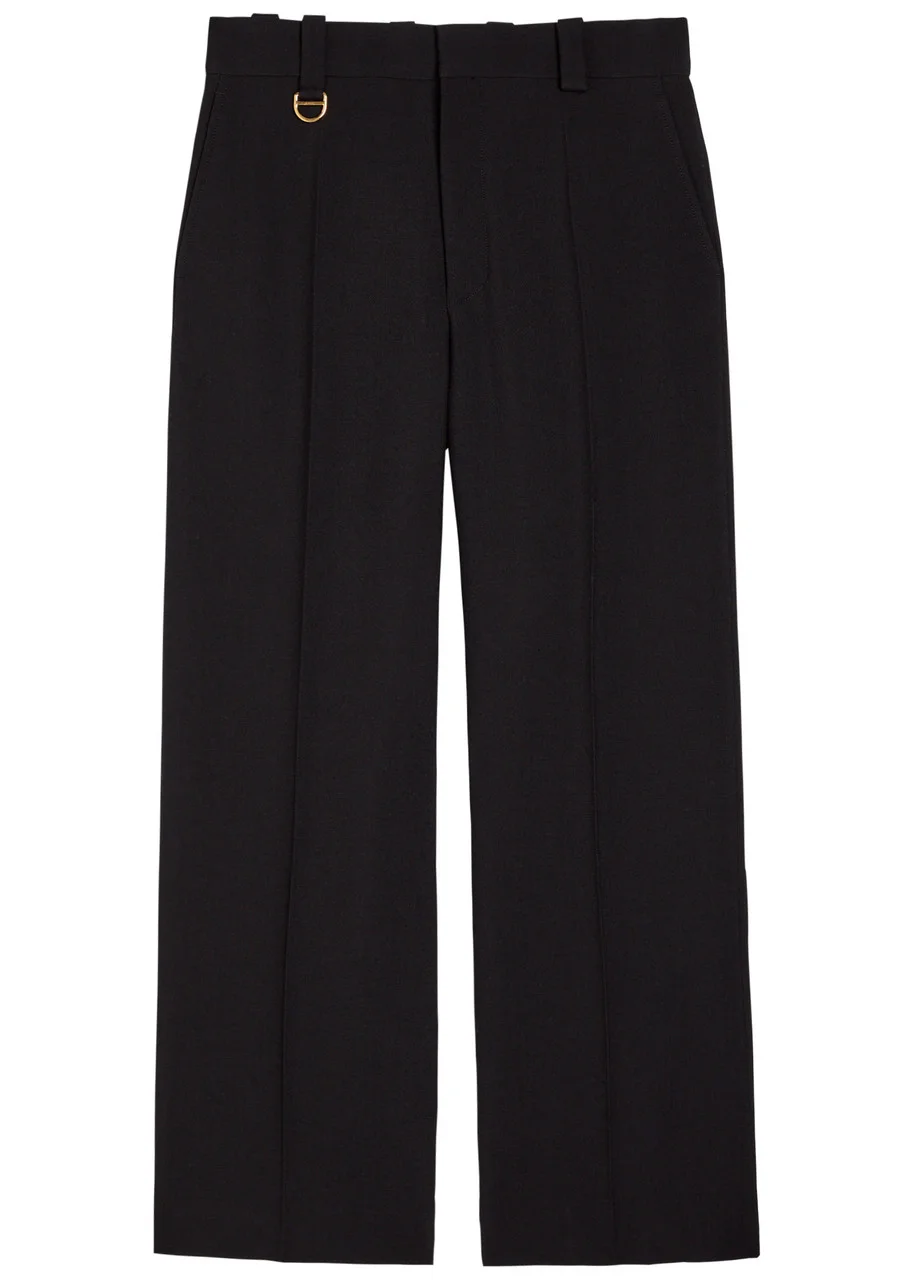 Info & Care Chloe wool-crepe trousers Belt loops, side slip pockets, pressed crease through legs, designer-engraved D-ring embellishment, back slit pockets Concealed zip, hook and button fastenings at front 100% virgin wool Dry clean Size & Fit Inside leg length: 28 inches/ 71cm Midweight Wide-leg cut, tailored style Model is 5'9"/ 175cm and wears a size;FR36