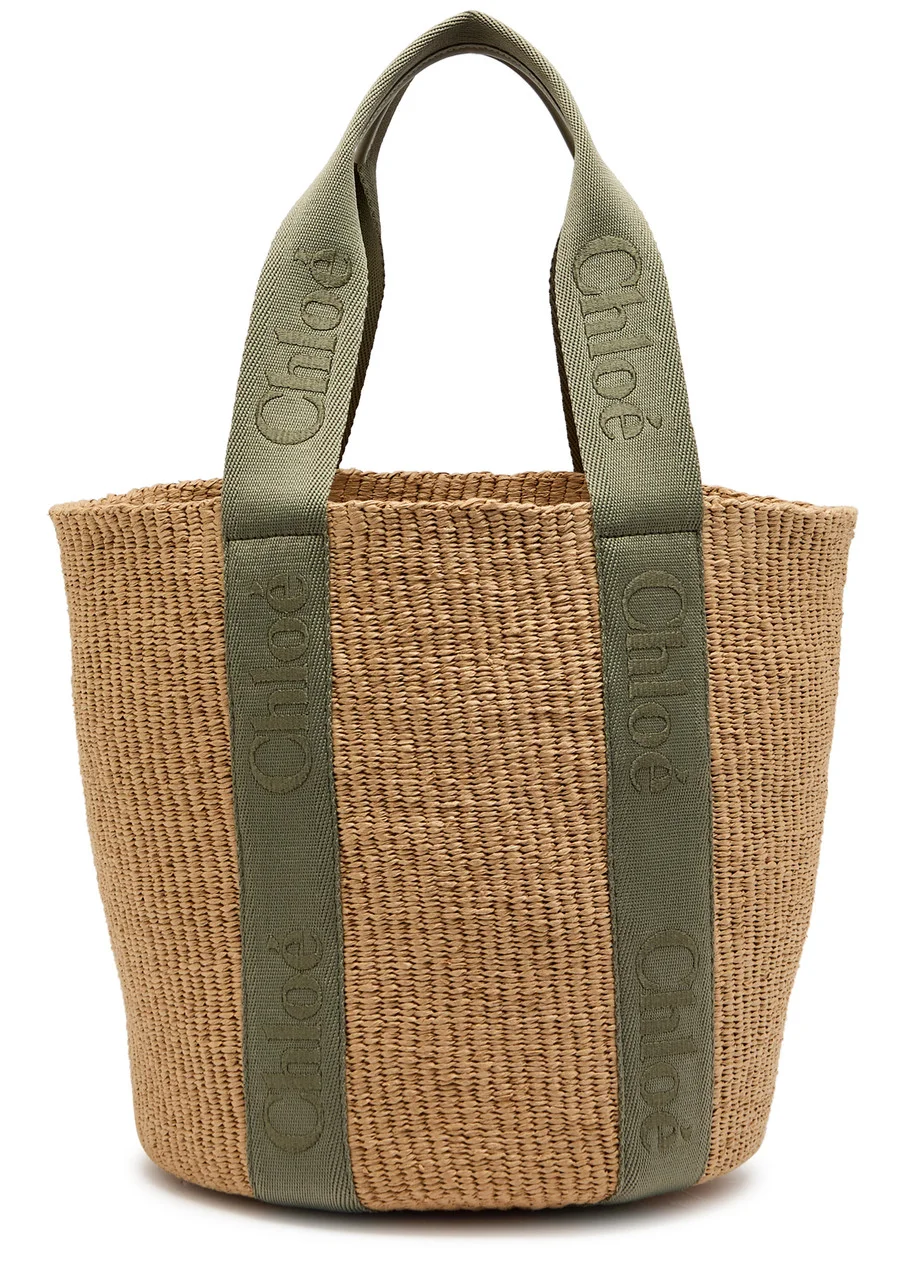 Chloe Woody Logo-embroidered Raffia Basket bag
