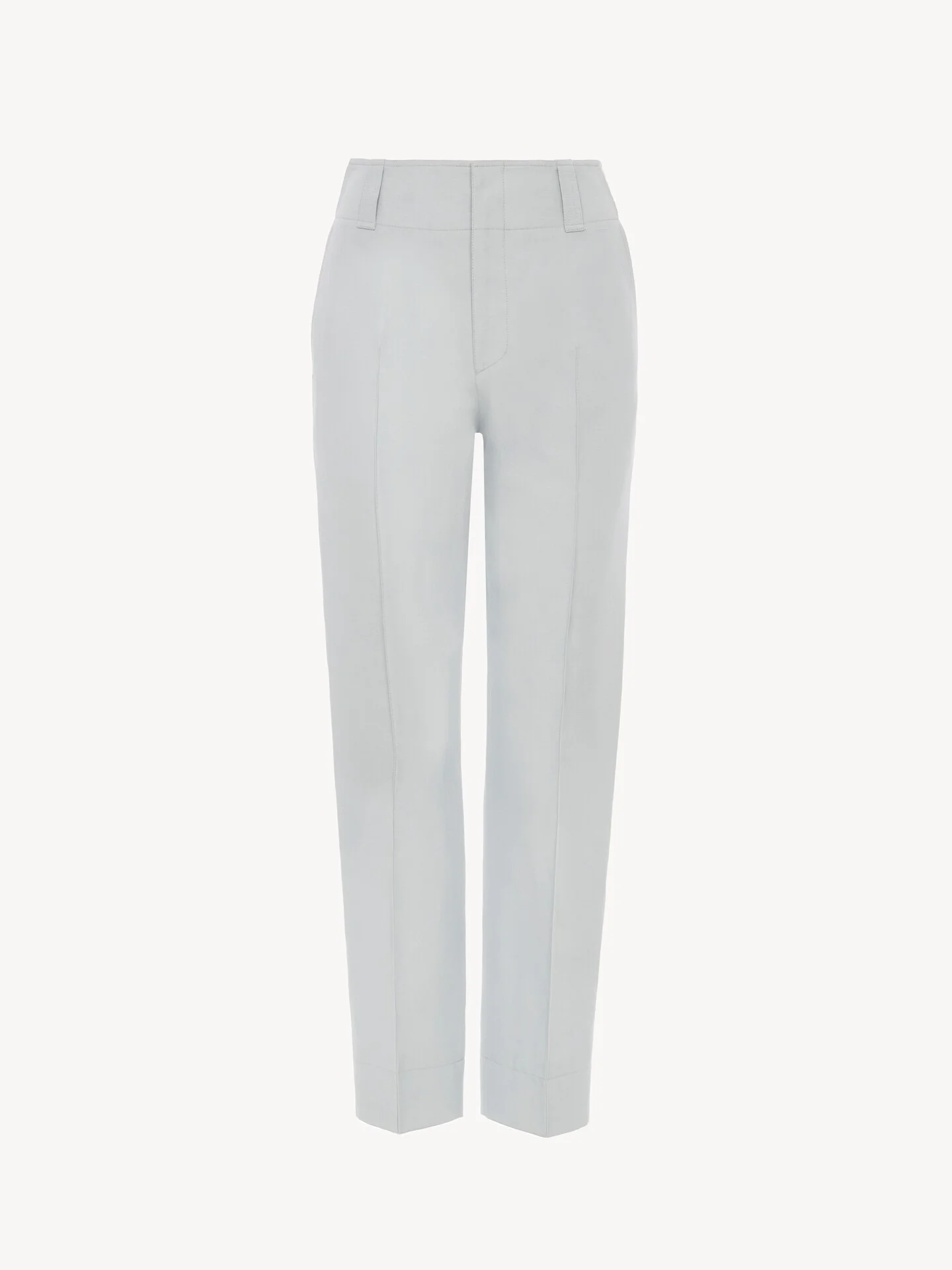 DESCRIPTION Straight cigarette pants in a slubbed linen-organic cotton mix with raised seams through the legs. PRODUCT DETAILS Cigarette pants outer shell: 52% Linen, 48% Cotton Lining: 100% Cotton Buttons: 100% Water buffalo horn Fit: straight - The model is 5'10" (178 cm) and wears a prototype in size 36 - Straight pants - Front hook & zipper fastening - Horn internal button - Side pockets - Piped back pockets - Belt loops An organic cotton farming system sustains the health of soils, ecosystems and people by eliminating the use of toxic and persistent organic pollutants and increasing water conservation. Color: Storm Grey Item code: CH26UPA0414301M CARE INSTRUCTIONS To preserve the integrity of your garment, please refrain from washing, entrusting its care to professional cleaning services for optimal maintenance. This garment cannot withstand any bleaching agent. To maintain its shape, gently iron this garment at a maximum sole plate temperature of 110°C, taking care to avoid any harsh pressure while ironing. Entrust this garment to a specialist for mild cleaning with tetrachloroethylene and solvent F, ensuring its delicate nature is maintained with the most care. To best preserve its form and texture, please do not tumble dry this garment. To maintain its delicate nature, do not wet clean this garment. TRACEABILITY Better traceability is central to improving our materials as well as social and environmental practices. Dyeing: Italy Finishing: Italy Weaving: Italy