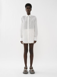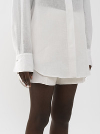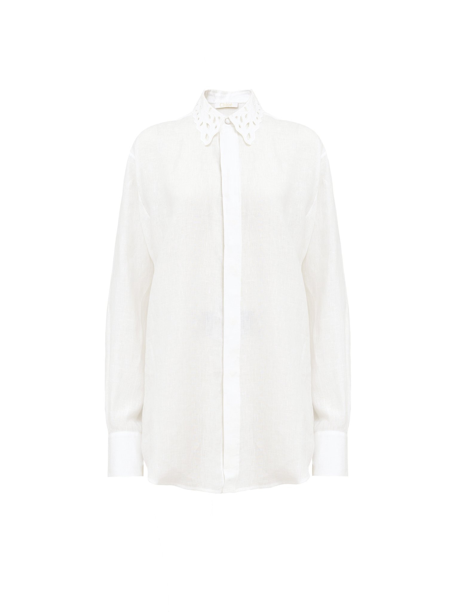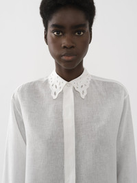 Cut from a soft linen voile in a generous silhouette, this classic shirt features romantic detail in the broderie anglaise collar. PRODUCT DETAILS Classic shirt main material: 100% Linen Care: dry cleaning only, delicate Fit: classic, long sleeves - The model is 5’10” (178 cm) and wears a prototype in size 36 - Broderie anglaise shirt - Concealed buttons through front Linen, hemp and ramie cultivations emit fewer greenhouse gases and require less water compared to other conventional natural fibers, which is why they are considered lower-impact materials by nature. Color: Iconic Milk Item code: CHC22AHT44134107