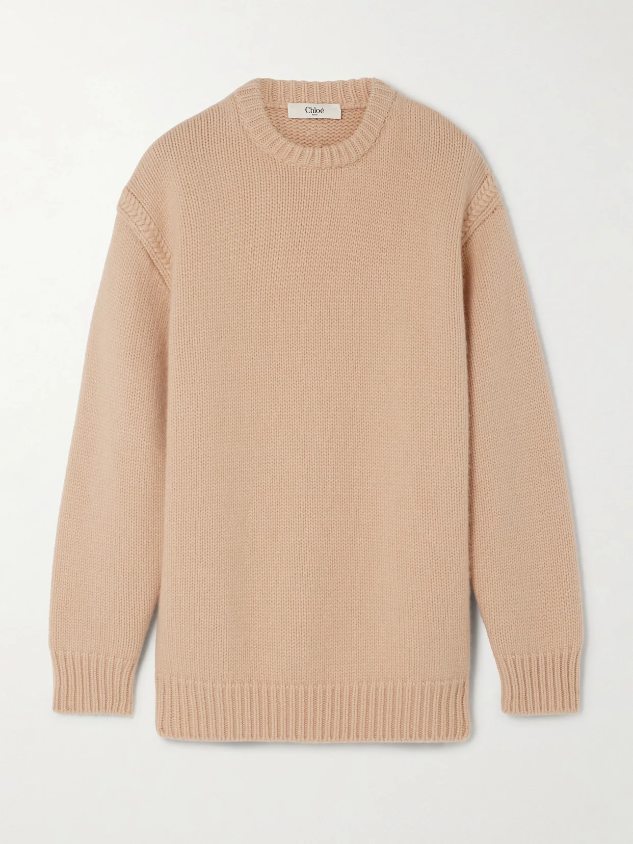 Chloe's cotton and cashmere-blend sweater is the perfect piece to cozy up in. It's knitted for a relaxed shape defined by dropped shoulders traced with cable trims. The soft beige shade will go with almost everything.