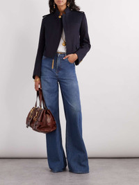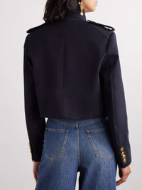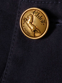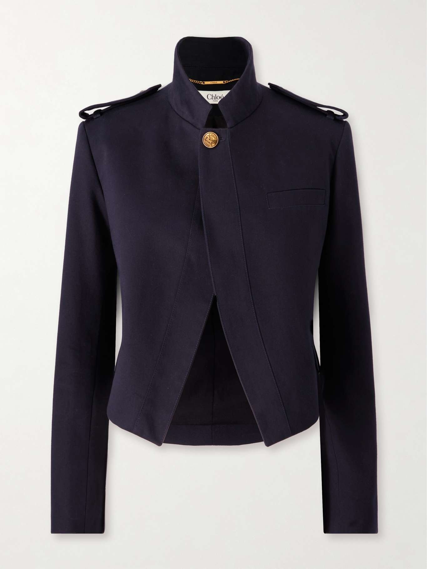 EDITORS'NOTES Chloe's jacket is influenced by military styles, complete with shoulder epaulettes and a stand collar. It's sharply tailored from cotton-twill and detailed with branded buttons featuring the depiction of a horse, which further calls to mind the label's equestrian roots. SIZE & FIT - Fits true to size, take your normal size - Designed for a slim fit - Mid-weight, non-stretchy fabric - Model is 180cm/ 5'11" and is wearing a FR 36 DETAILS & CARE - Navy cotton-twill - Button fastening at front - 100% cotton; lining: 51% viscose, 49% cotton