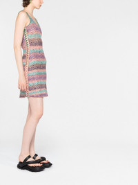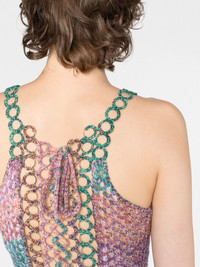crochet-knit wool minidress Infused with the label's free-spirited charm, this dress from Chloe is spun from wool with multicoloured yarn to create a kaleidoscopic striped design. The sleeveless silhouette is adorned with hand-crocheted, lace-covered ring inserts at the sides and back. Highlights - Multicolour - Crochet knit - Wool - Horizontal stripe pattern - Ring embellishment - Scoop neck - Sleeveless - Racerback - Thigh-high Imported Composition Wool 100% SIZE & FIT Model measurements Height 5 ft 11 in(1.81 m) Bust/Chest 32.67 in(83 cm) Hips 37.79 in(96 cm) Waist 25.59 in(65 cm) Washing instructions Dry Clean Only