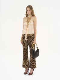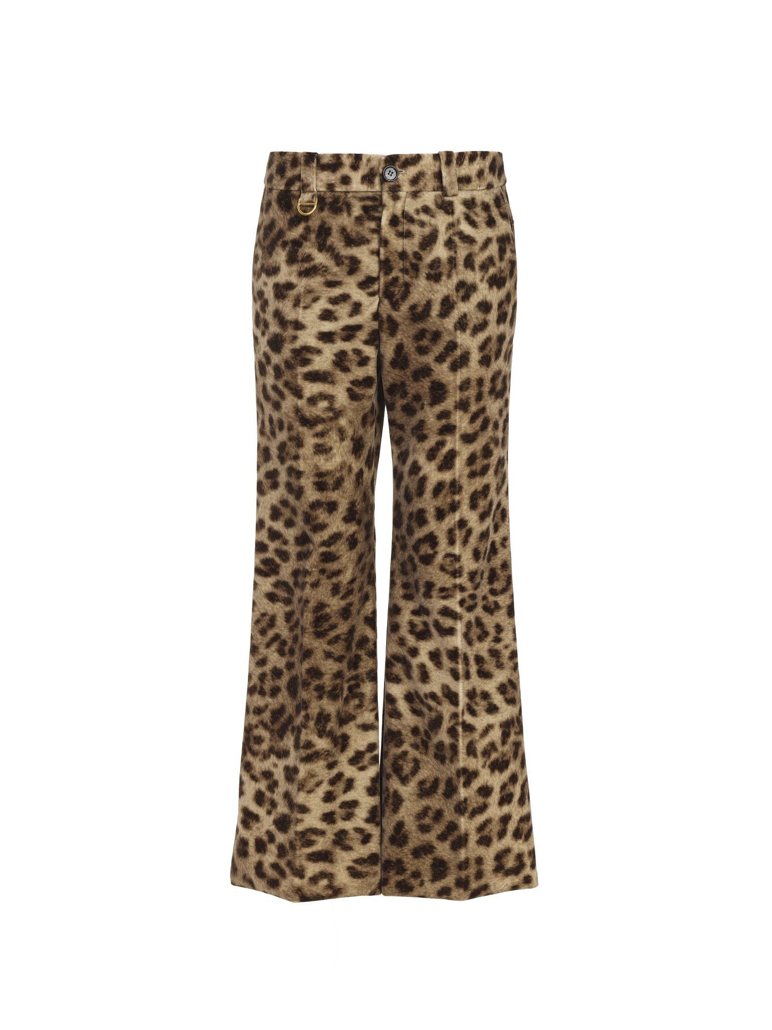 Cropped bootcut pants in leopard-print cotton velvet, featuring a gold-toned D-ring at the right hip. PRODUCT DETAILS Cropped bootcut pants outer shell: 100% Cotton Lining: 51% Viscose, 49% Cotton Button: 100% Horn Fit: cropped, bootcut - The model is 5'10" (178 cm) and wears a prototype in size 36 - Leopard-print pants - Front zipper - Engraved button - Side pockets - Belt loops - Gold-toned D-ring at right hip Care: dry cleaning only Color: Worn Brown Item code: CH25SPA3129026A