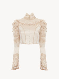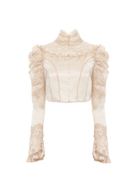 CROPPED FITTED JACKET IN SILK DUCHESS SATIN & LACE