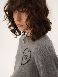 DESCRIPTION Cropped fitted sweater in a wool and cashmere ribbed knit, featuring contrast edges and Chloe logo embroidery surrounded by a heart. PRODUCT DETAILS Fitted sweater outer shell: 70% Wool, 30% Cashmere wool Fit: cropped, fitted - The model is 5'10" (178 cm) and wears a prototype in size S - Knit sweater - Slips on Color: Divine Grey Item code: CH26SMP39710012 CARE INSTRUCTIONS To preserve the integrity of your garment, please refrain from washing, entrusting its care to professional cleaning services for optimal maintenance. This garment cannot withstand any bleaching agent. To maintain its shape, gently iron this garment at a maximum sole plate temperature of 110°C, taking care to avoid any harsh pressure while ironing. Entrust this garment to a specialist for mild cleaning with tetrachloroethylene and solvent F, ensuring its delicate nature is maintained with the most care. To best preserve its form and texture, please do not tumble dry this garment. To maintain its delicate nature, do not wet clean this garment. TRACEABILITY Better traceability is central to improving our materials as well as social and environmental practices. Dyeing: Italy Finishing: Italy Knitting: Italy