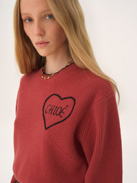 DESCRIPTION Cropped fitted sweater in a wool and cashmere ribbed knit, featuring contrast edges and Chloe logo embroidery surrounded by a heart. PRODUCT DETAILS Fitted sweater outer shell: 70% Wool, 30% Cashmere wool Fit: cropped, fitted - The model is 5'10" (178 cm) and wears a prototype in size S - Knit sweater - Slips on Color: Coppery Pink Item code: CH26SMP397106AN CARE INSTRUCTIONS To preserve the integrity of your garment, please refrain from washing, entrusting its care to professional cleaning services for optimal maintenance. This garment cannot withstand any bleaching agent. To maintain its shape, gently iron this garment at a maximum sole plate temperature of 110°C, taking care to avoid any harsh pressure while ironing. Entrust this garment to a specialist for mild cleaning with tetrachloroethylene and solvent F, ensuring its delicate nature is maintained with the most care. To best preserve its form and texture, please do not tumble dry this garment. To maintain its delicate nature, do not wet clean this garment. TRACEABILITY Better traceability is central to improving our materials as well as social and environmental practices. Dyeing: Italy Finishing: Italy Knitting: Italy