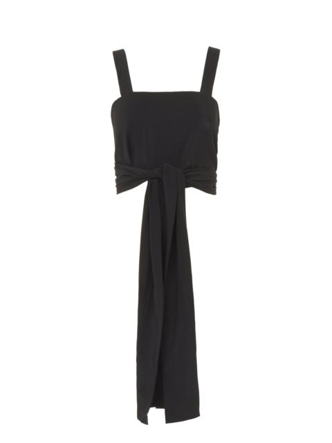 Cropped front-tie tank top in organic silk crepe de chine with a square neckline and long ties knotted at the front. PRODUCT DETAILS Cropped front-tie tank top outer shell: 100% Silk Fit: cropped, fitted - The model is 5'10" (178 cm) and wears a prototype in size S - Cropped tank top - Slips on Care: dry cleaning only Organic silk manufacturing restricts the use of pesticides, insecticides or harsh chemicals and incorporates methods that respect biodiversity, improve soil quality and reduce water consumption. This product was made in collaboration with Akanjo, a certified WFTO supplier. Akanjo is a social enterprise located in Madagascar that places equal pay and employees' health & wellbeing at the core of their priorities. A long-standing partner of Chloe for 15 years, Akanjo is also committed to training and promoting craftsmanship. Color: Black Item code: CH25UHT25125001