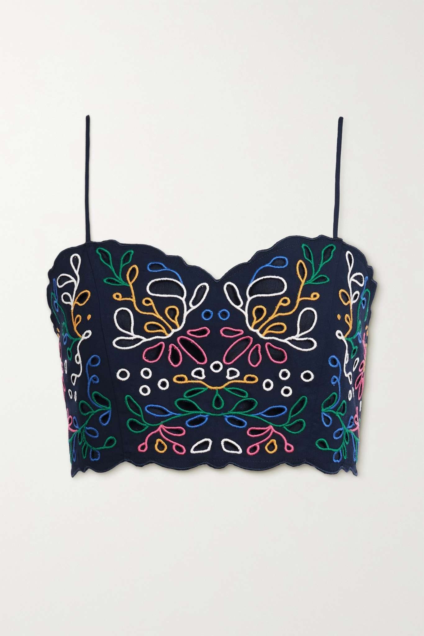 - Navy broderie anglaise cotton - Button fastenings through back - 100% cotton; lining: 100% ramie