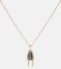 Renowned for its free-spirited aesthetic, Chloe's designs are characterized by romance with a Parisian flair. From the exclusive A La Plage Capsule Collection, this chain necklace is defined by a dazzling blue stone pendant amidst rows of cascading crystal embellishments. Product Details - Material: brass, crystals - Made in Italy - Item color: gold - Item number: P01039825 Size & Fit - Adjustable size - Max. width 2cm-1" - Pendant length 8cm-3" - Pendant width 2cm-1" - Min. length 75cm-29.5" - Max. length 80cm-31.5"