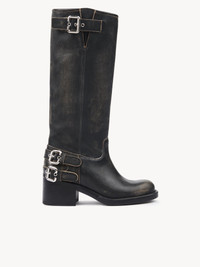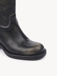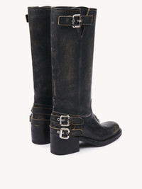 Crafted from grained brushed calfskin, these Dakota ankle boots are inspired by classic biker boots. Set on a sturdy rubber structure, they combine a low tube leg with a comfortable stacked heel. Multiple silver-tone Paddington buckles finish these leather boots. PRODUCT DETAILS Ankle boot heel height: 2.4" (6 cm) Heel-to-toe drop: 1.6" (4 cm) Upper: calfskin Inner sole: calfskin Main lining: calfskin Sole: rubber Fit true to size, European sizing - Slip-on To make this product, Chloe worked with Leather Working Group (LWG) certified leather manufacturers. LWG certifies tanneries based on their water and energy usage, management of chemicals, solid waste, and wastewater. Color: Black Item code: CHC25A12FSY001