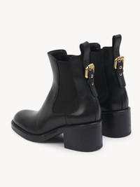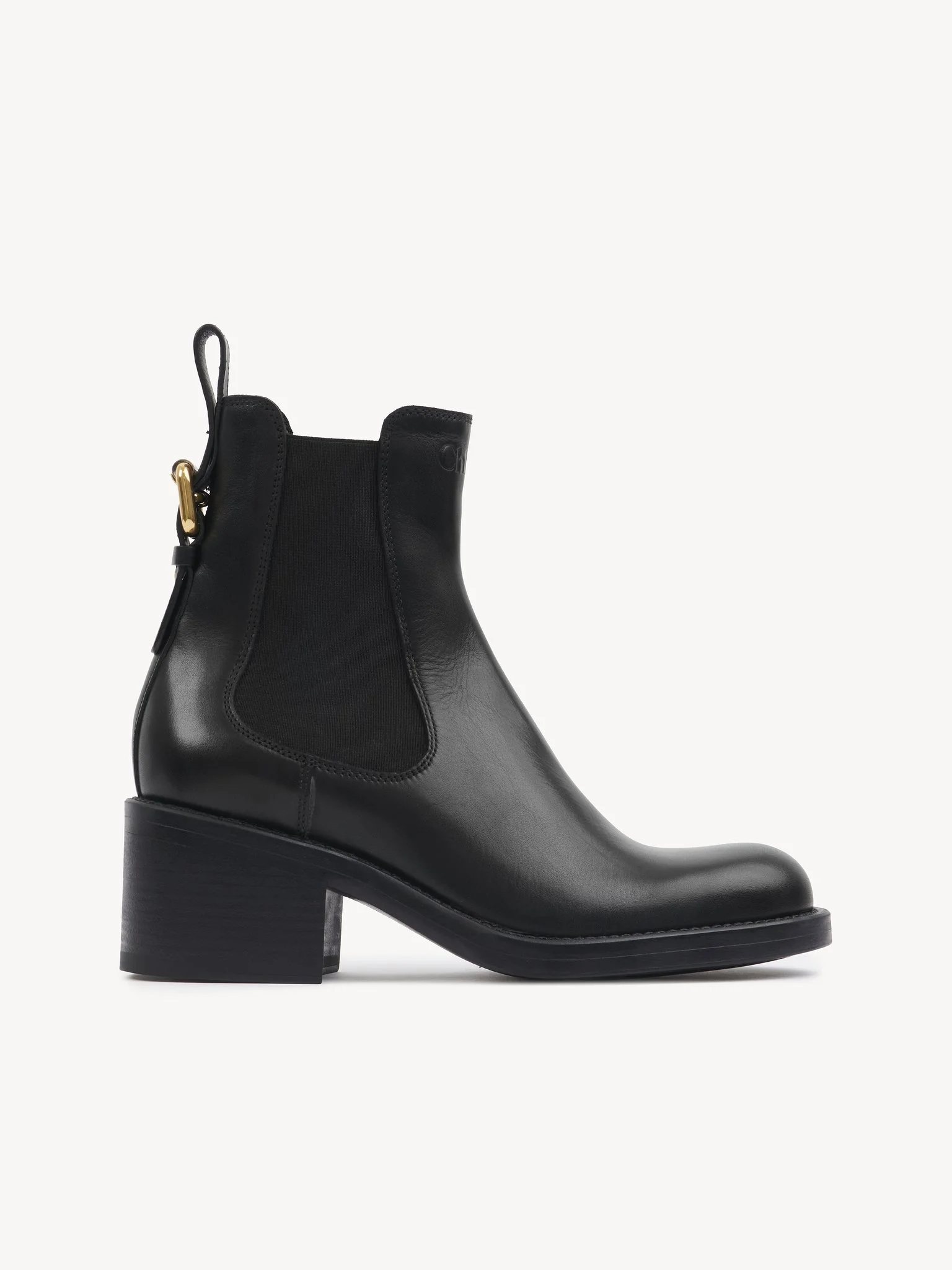 Crafted from calfskin, these Dakota boots are inspired by classic Chelsea boots. Combining a sturdy rubber structure with a comfortable stacked heel, they are finished with a gold-tone Chloe-engraved Paddington buckle at the back. PRODUCT DETAILS Chelsea boot heel height: 2.4" (6 cm) Heel-to-toe drop: 1.6" (4 cm) Upper: calfskin Inner sole: lambskin Main lining: lambskin Sole: rubber Fit true to size, European sizing - Slip-on - Decorative Paddington buckles To make this product, Chloe worked with Leather Working Group (LWG) certified leather manufacturers. LWG certifies tanneries based on their water and energy usage, management of chemicals, solid waste, and wastewater. Color: Black Item code: CH25W15LPT001