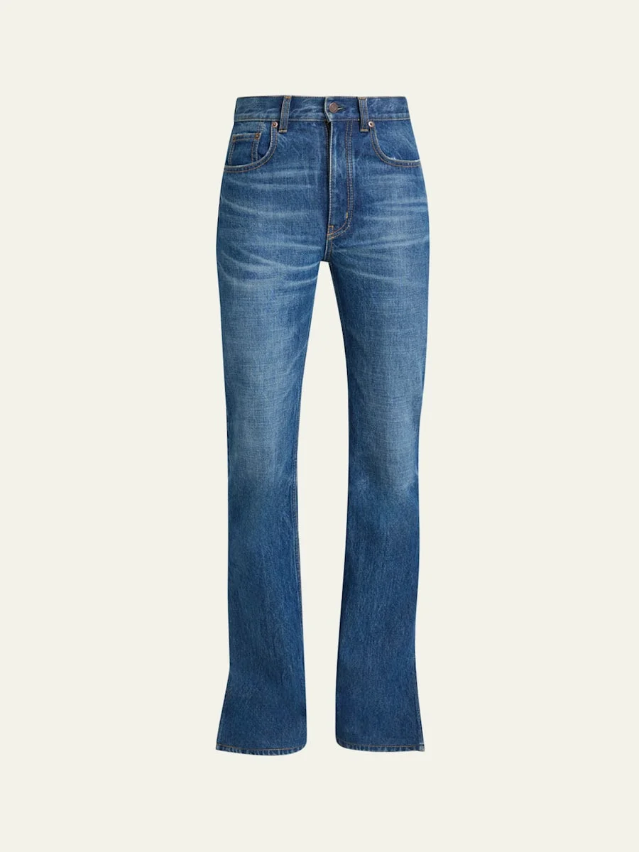 Denim Bootcut-Leg Split-Hem Pants