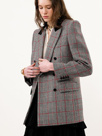 DOUBLE-BREASTED TAILORED JACKET IN WOOL CHECK