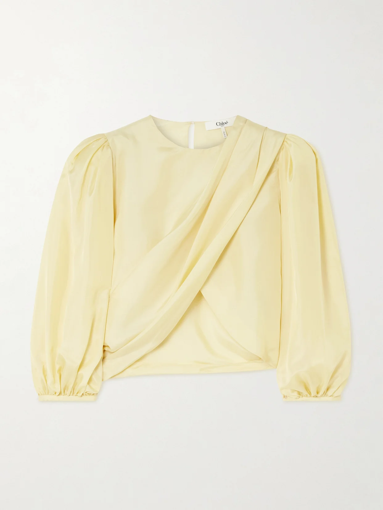 Chloe's blouse reflects Chemena Kamali's fresh, feminine take on the iconic French maison. It's made from fluid silk-satin that's draped to create an asymmetric, wrap-effect design and has a cropped hem and billowy sleeves.