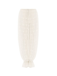 Fluid drawstring pants in embroidered lace rooted in the Maison's heritage, with a separate silk-mix shorts lining and gathered ankles. PRODUCT DETAILS Drawstring pants outer shell: 100% Polyester Braid: 100% Silk Lining: 68% Acetate fiber, 32% Silk Fit: fluid - The model is 5'10" (178 cm) and wears a prototype in size 36 - White lace pants - Elasticated drawstring waist - Separate shorts lining Care: dry cleaning only Color: Whisper White Item code: CH25UPA18099113