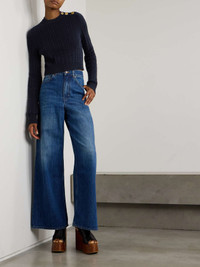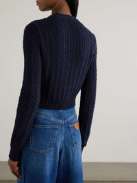 EDITORS'NOTES Chloé's sweater is embellished with etched gold-tone buttons along the shoulder depicting laurels. It's knitted from cotton with slim cable ties and finished with ribbed edges. Wear yours with flared pants and ankle boots. SIZE & FIT Model measurements: - Fits true to size, take your normal size - Intended for a slim fit - Mid-weight knit - Model is 180cm/ 5'11" and is wearing a size XSmall - Bust: 80cm/ 31.5" - Waist: 65cm/ 25.5" - Hip: 89cm/ 35" DETAILS & CARE - Navy cotton - Button fastenings along shoulder - 100% cotton - Machine wash - Designer color: Classic Navy