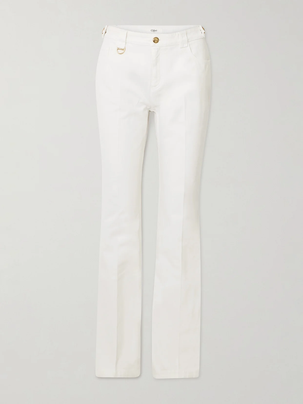 Chloe's jeans are decorated with a gold-tone D-ring shaped to look like a horsebit, as well as moniker-engraved buttons. They're made from cotton in a fresh white wash and sit on your natural waist.