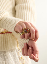Chloe's ring looks like a vintage heirloom. It's made from gold-tone brass and centered with a marbled jasper stone. The split shank and slim band are lightly hammered for a subtle light-catching finish. Size & Fit - French sizing - Measurements can be found in the link below Details & Care