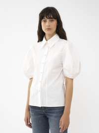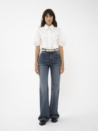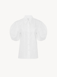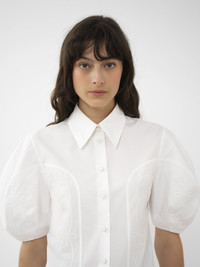Cut from organic cotton poplin, this timeless balloon-sleeve shirt features a heart-shaped yoke detailed with tonal bandana embroideries. The heart-and-flower pattern offers a nod to the Spring-Summer '24 collection's botanical inspiration. This product was made in collaboration with Akanjo, a certified WFTO supplier. Akanjo is a social enterprise located in Madagascar that places equal pay and employees' health & wellbeing at the core of their priorities. A long-standing partner of Chloé for 15 years, Akanjo is also committed to training and promoting craftsmanship. PRODUCT DETAILS Balloon-sleeve shirt main material: 100% Cotton Embroidery thread: 100% Polyester Care: dry cleaning only Fit: straight - The model is 5'10" (178 cm) and wears a prototype in size 36 - Short-sleeve shirt - Buttons through front An organic cotton farming system sustains the health of soils, ecosystems and people by eliminating the use of toxic and persistent organic pollutants and increasing water conservation. Color: Iconic Milk Item code: CHC24UHT05041107