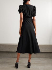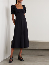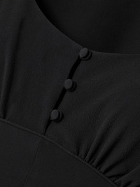 From the empire silhouette to the covered buttons, Chloe's dress is imbued with vintage charm. It's cut on the bias from crepe de chine blended with 40% certified silk and has a scooped neckline framed by romantic puffed sleeves. Style yours with Mary Jane pumps. Lower-Impact Materials. This product is made using at least 50% lower-impact materials or ingredients. Find out more about our NET SUSTAIN criteria here. Size & Fit - Fits true to size, take your normal size - Designed for a slim fit - Mid-weight, fluid, non-stretchy fabric - Model is 180cm/ 5'11" and is wearing a FR 36 Model measurements: - Bust: 80cm/ 31.5" - Waist: 65cm/ 25.5" - Hip: 89cm/ 35" Details & Care - Black crepe de chine - Button fastenings along front - 60% acetate, 40% silk; lining: 68% acetate, 32% silk - Partially lined - Dry clean