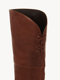These Eve over-the-knee boots are crafted from vintage-effect calfskin. Combining a high tube leg with a stiletto-shaped heel and a classic pointed toe, they are finished with criss-cross leather laces at the thigh. The 70s-inspired leg is soft and supple for versatile styling: pull to the knee for a fitted look or wear slouchy. PRODUCT DETAILS Thigh high boot heel height: 3.3" (8.5 cm) Heel-to-toe drop: 3.1" (8 cm) Upper: calfskin Inner sole: lambskin Main lining: lambskin Sole: cowhide Heel: calfskin Fit true to size, European sizing - Lace-up To make these thigh high boots, Chloe worked with Leather Working Group (LWG) certified leather manufacturers. LWG certifies tanneries based on their water and energy usage, management of chemicals, solid waste, and wastewater. Color: Sooty Brown Item code: CHC24W03POO25E