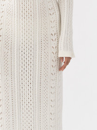 This fitted knit dress brings a fresh twist to the Maison's signature broderie anglaise. Crafted in an ankle-length silhouette, the long-sleeved dress reveals multiple stitch techniques that mimic the delicate embroidery in a soft wool cashmere yarn. The casual crew neck is offset against tiny feminine ruffles at the shoulders. PRODUCT DETAILS Fitted knit dress main material: 70% Merino wool, 30% Cashmere Care: dry clean only Fit: slim, mid-hand-length sleeves, ankle-length - The model is 5’10" (178 cm) and wears a size S prototype - Wool dress - Long-sleeved dress - Slips on Color: snow white Item code: CHC21WMR07580104