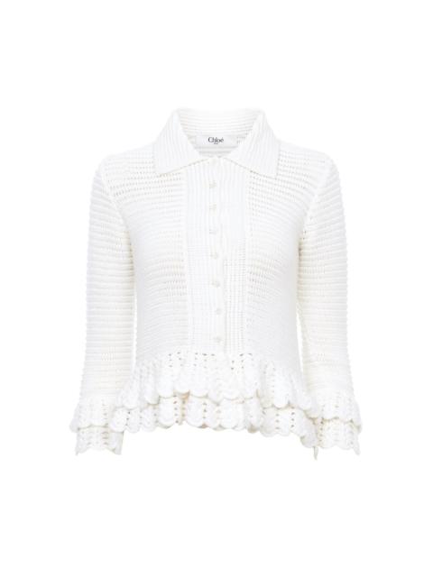 FITTED RUFFLED CARDIGAN IN CROCHET KNIT