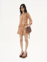 FITTED RUFFLED CARDIGAN IN CROCHET KNIT