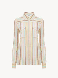 Fitted shirt in textured, striped crepon cotton with flap chest pockets and mother-of-pearl buttons. PRODUCT DETAILS Fitted shirt outer shell: 100% Cotton Buttons: 100% Mother-of-pearl Fit: fitted - The model is 5'10" (178 cm) and wears a prototype in size 36 - Cotton shirt - Buttons through front - Buttoned flap chest pockets Color: White Multicolor Item code: CH25AHT060831ZA