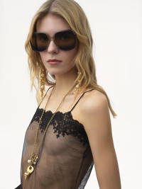 Fitted tank top in a sheer viscose mix with thin straps, embroidered lace and fabric-covered buttons at the side. PRODUCT DETAILS Fitted tank top outer shell: 80% Viscose, 20% Polyamide Lacework: 70% Polyester, 24% Viscose, 6% Polyamide Fit: fitted - The model is 5'10" (178 cm) and wears a prototype in size 36 - Lace-trimmed tank top - Fabric-covered buttons at the side Care: dry cleaning only Color: Black Item code: CH25UHT66099001