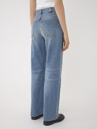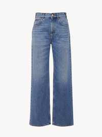 These flare boyfriend jeans are crafted from a "vintage" wash recycled cotton and hemp blend, laser-treated for reduced water use. The low-waist boyfriend cut creates a relaxed mood, while the signature Marcie buckle lends a refined finish. Turn up the hem to accentuate the boyish attitude. PRODUCT DETAILS Flare boyfriend jeans main material: 87% Cotton, 13% Hemp Pocket lining: 65% Polyester, 35% Cotton Care: dry cleaning only Fit: flared, relaxed - The model is 5'10" (178 cm) and wears a prototype in size 36 - Flare jeans - Front button & zipper fastening - Classic 5-pocket design - Belt loops - Marcie buckle This denim is a blend of recycled cotton and natural fibers (hemp or linen), both considered lower-impact materials. Recycled cotton keeps its natural softness and inherent quality, with a reduced environmental impact. Using recycled cotton enables us to extend the lifespan of a fiber that has already been produced. Linen, hemp and ramie cultivations emit less greenhouse gases and require less water compared to other conventional natural fibers, which is why they are considered lower-impact materials by their nature. Color: Foggy Blue Item code: CHC24SDP03157470
