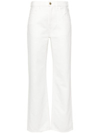 low-rise flared jeans Highlights - White - Cotton-hemp blend - Denim - Decorative gold-tone buckle to the rear - Belt loops - Classic five pockets - Tonal stitching - Boyfriend cut - Front button and zip fastening Made in Italy Composition Cotton 87%, Hemp 13% SIZE & FIT Model measurements Height 5 ft 11 in(1.8 m) Bust/Chest 31.49 in(80 cm) Hips 36.22 in(92 cm) Waist 25.59 in(65 cm) Measurement FRONT RISE 11.41 in(29 cm) HIPS 37 in(94 cm) WAIST 27.55 in(70 cm) FittingInformation Designed for a straight-leg fit, these jeans allow for a close fit at the waist and an unrestricted and comfortable fit over the leg Constructed from stretch denim, this piece offers a stretch fit with durability This piece fits true to size – take your usual size Measurement FRONT RISE 11.02 in(28 cm) HIPS 36.22 in(92 cm) WAIST 26.77 in(68 cm) Washing instructions Machine Wash