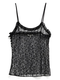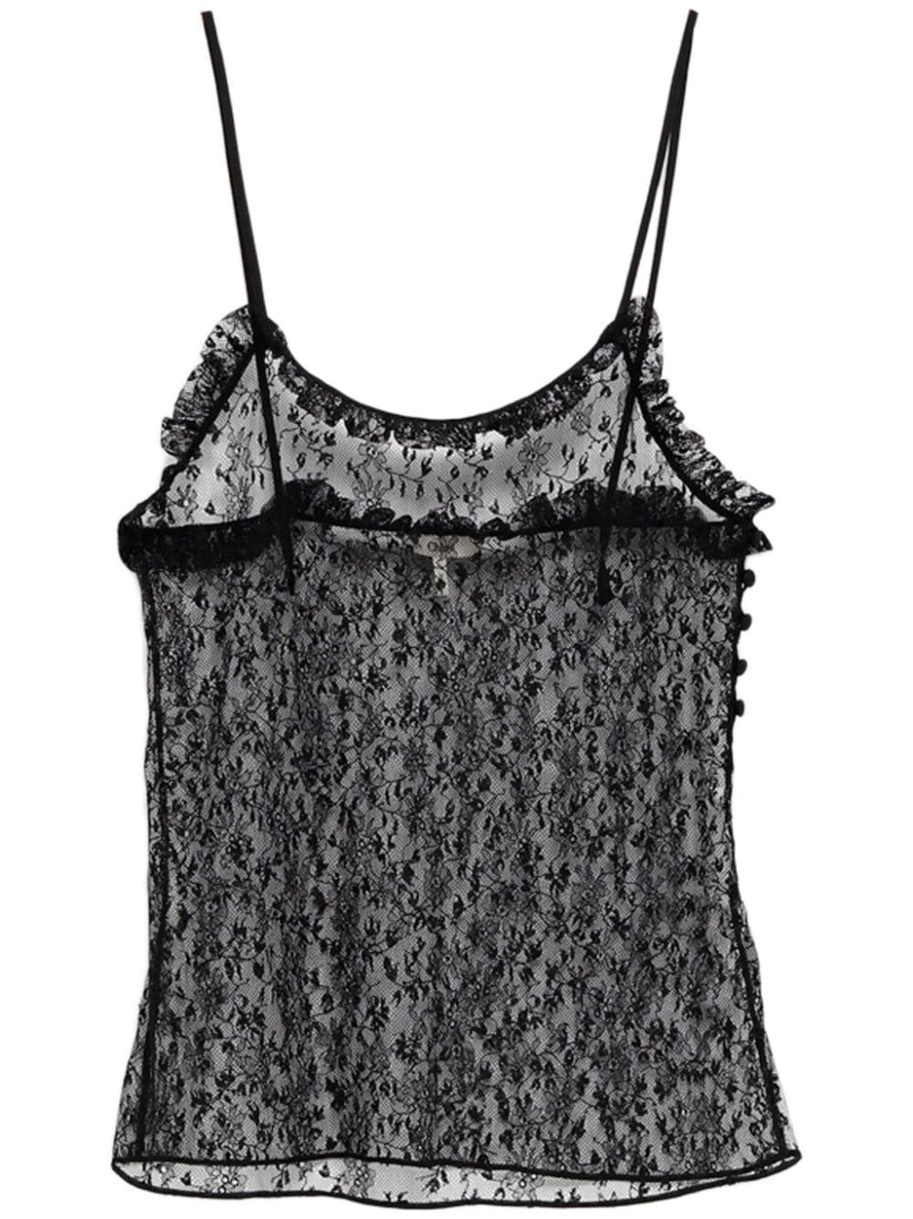 floral-lace tank top Highlights - Black - Semi-sheer construction - Floral-lace design - Side button fastening - Ruffled trim - V-neck - Adjustable spaghetti straps - Unlined - Straight hem Made in Italy Composition Polyamide 51%, Viscose 49%